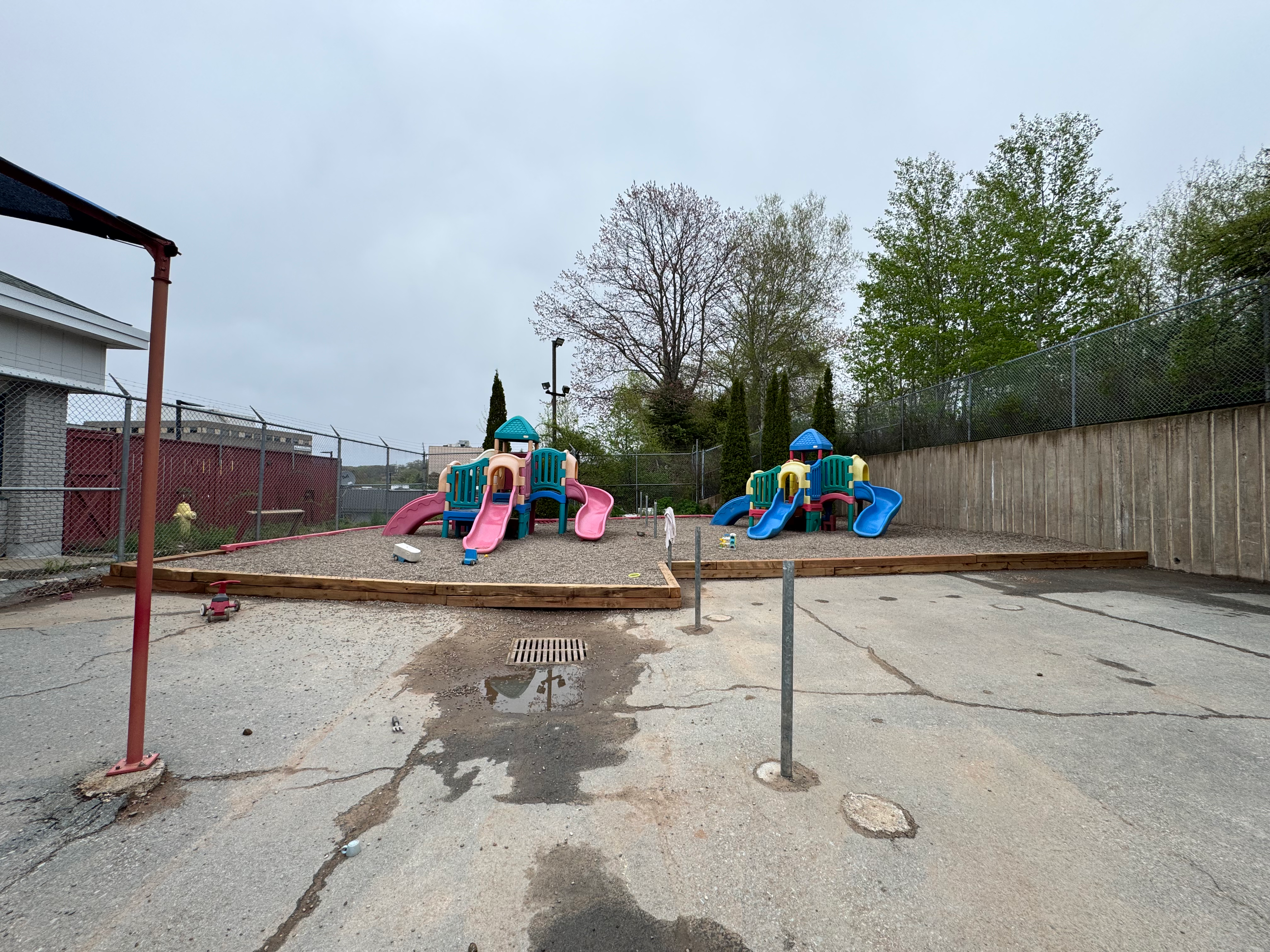 This project focuses on improving the outdoor spaces of our daycare facility to create a safer, more functional, and welcoming environment for children. The scope of work includes the demolition of two small structures, removal of overgrown branches and debris, and the replacement of all existing pea gravel.