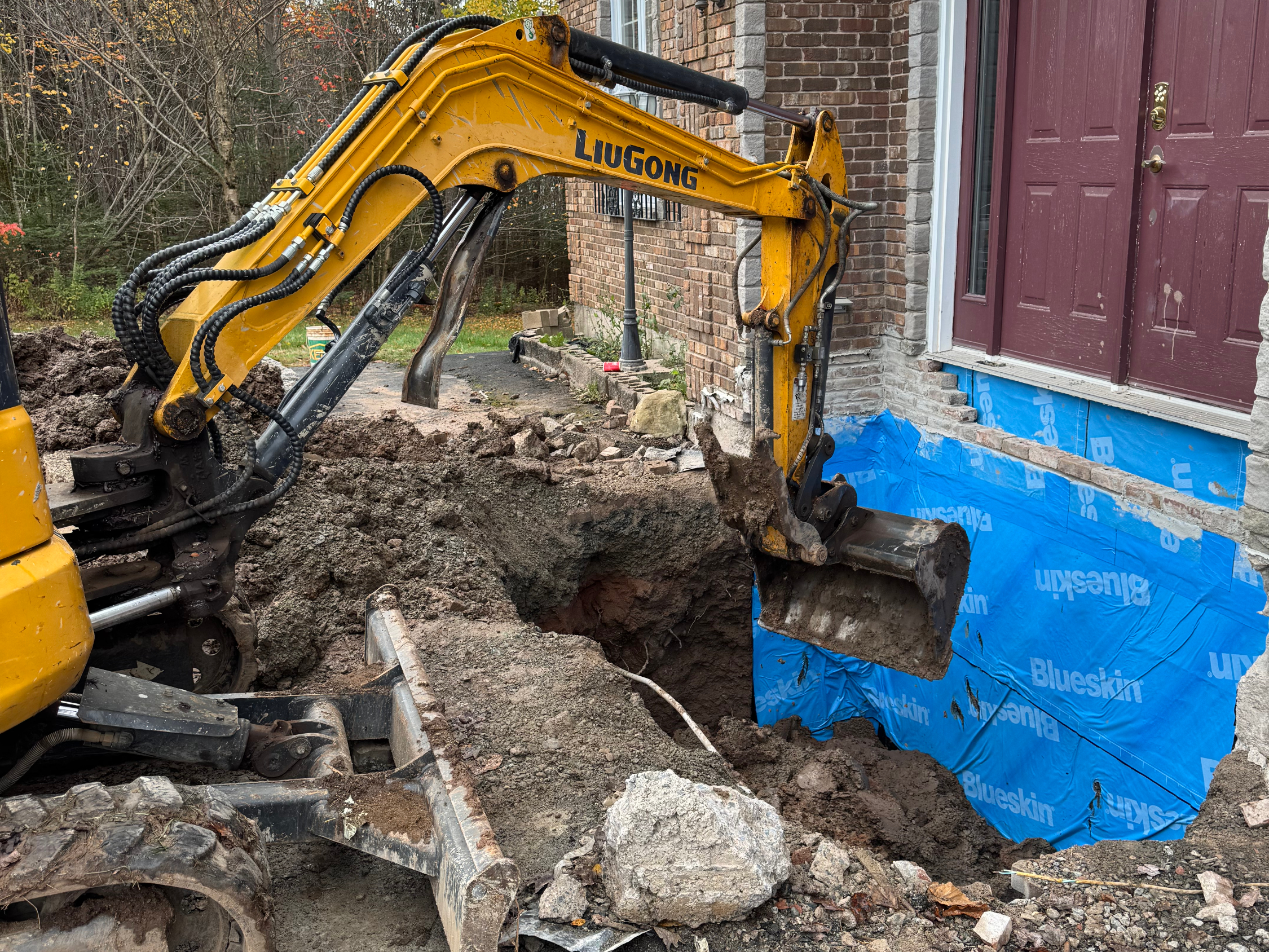The homeowner experienced water leakage in the basement and requested an inspection to identify the source of the issue. Our scope of work also included the removal and demolition of the front stairs to allow full access to the foundation.Excavation was carried out to a depth of over 8 feet to locate and repair all cracks in the foundation, ensuring long-term protection.